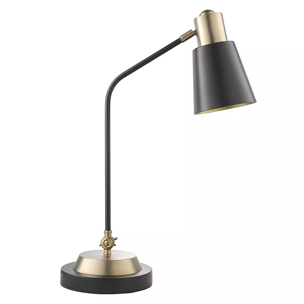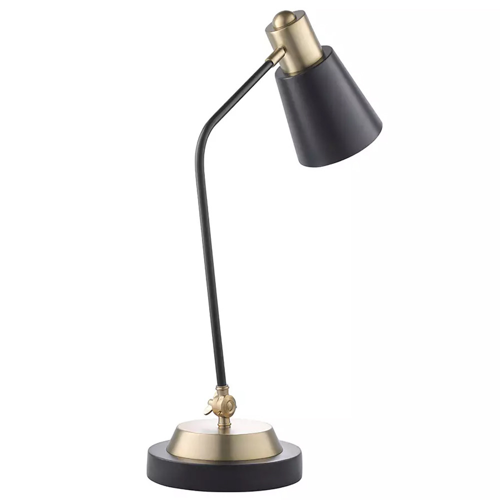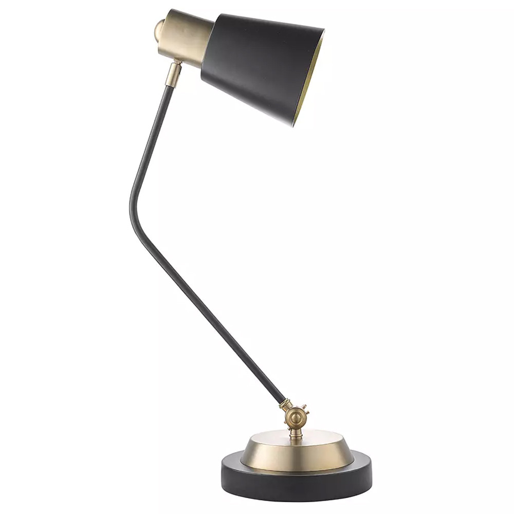 Настольная лампа с наклонным корпусом и подвижным плафоном в сочетании золотистого и чёрного цвета Work Surface Light