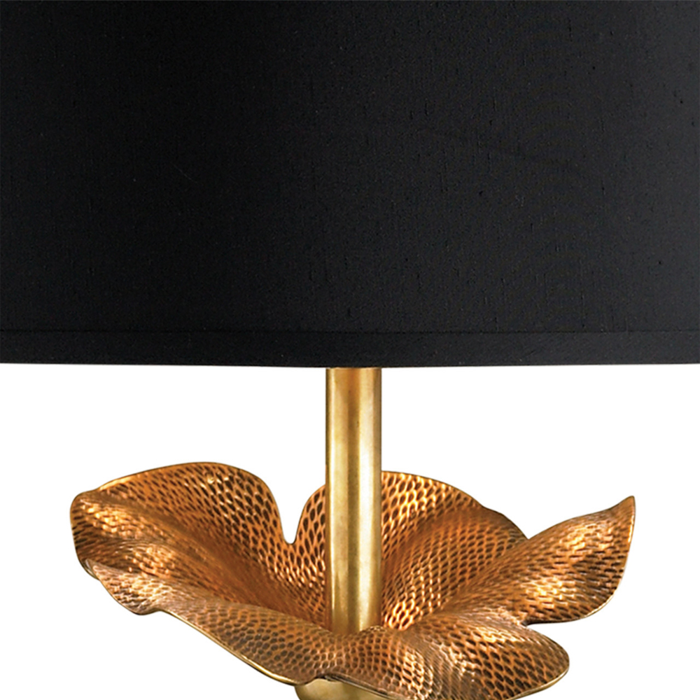 Настольная лампа с цветком на основании и черным абажуром Fluttering Leaf