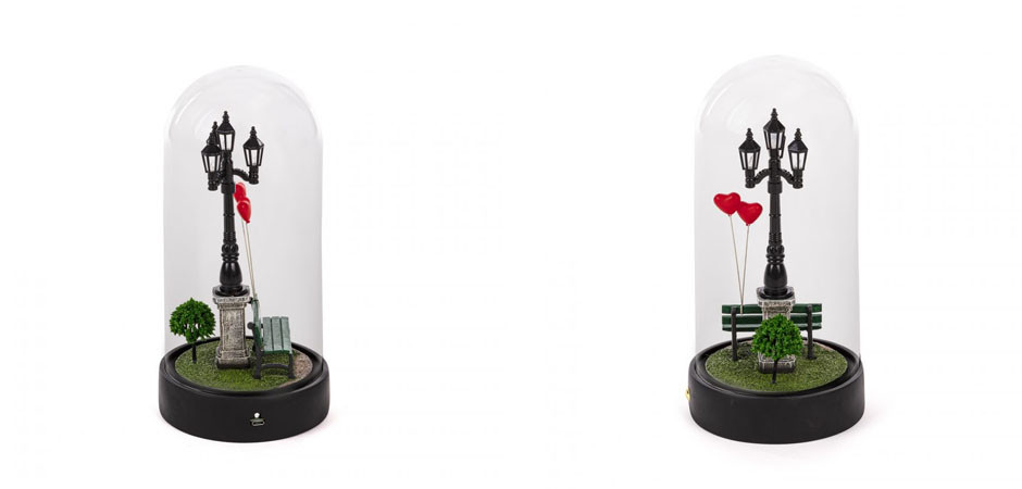 Настольная лампа Seletti My Little Valentine- крошечная сцена под стеклянным куполом. Скамья — один из самых знаковых объектов, когда-либо изобретенных, где время почти останавливается. Место и идеальный момент, чтобы поделиться с кем-то особенным, делая что-нибудь или вообще ничего.