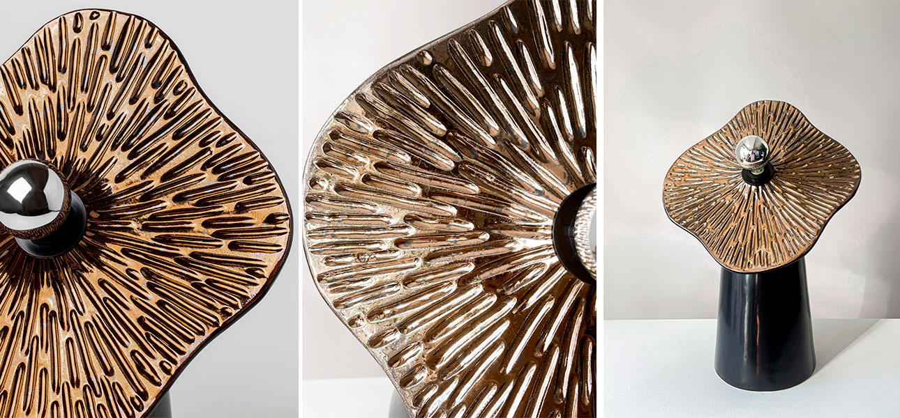 Корпус и основание ламп выполнены из высококачественной керамики и каменной массы. Эти природные материалы придают светильникам прочность, долговечность и уникальную фактуру поверхности.
