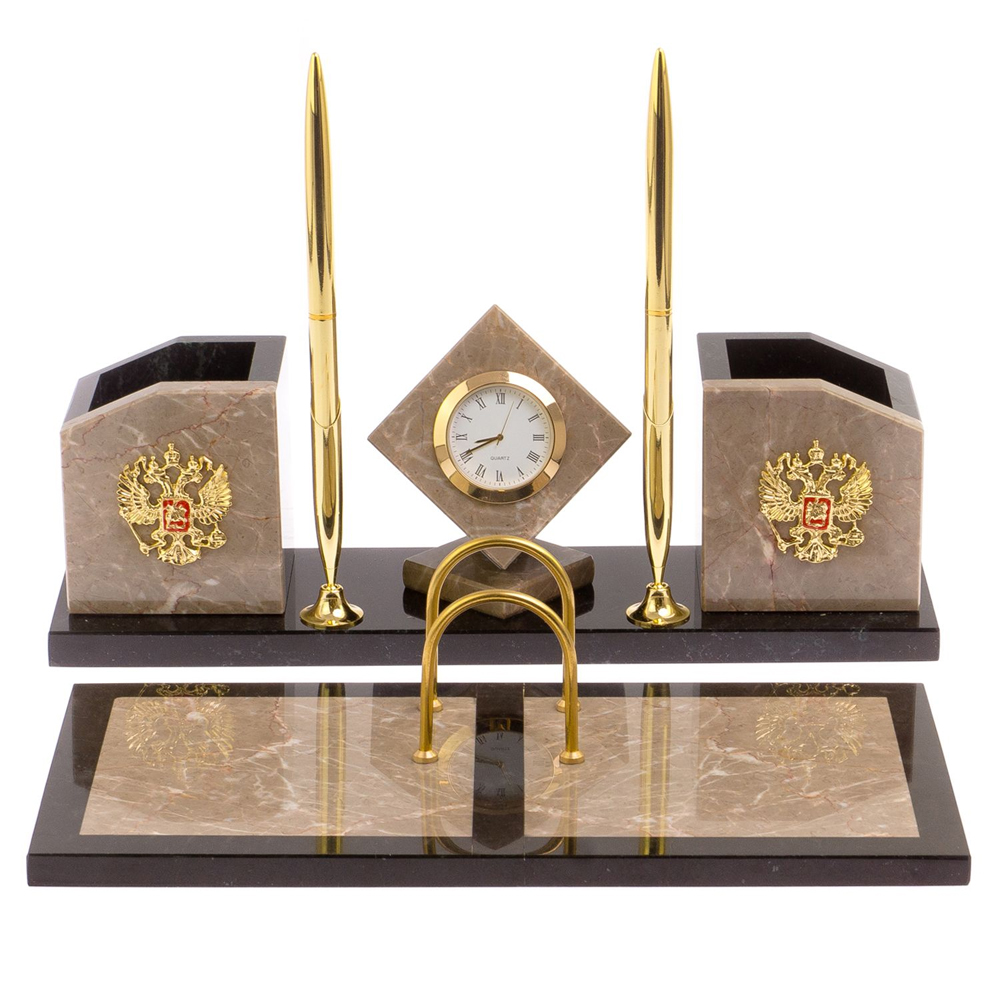 Настольный письменный набор из бежевого мрамора с часами Marble Accessory