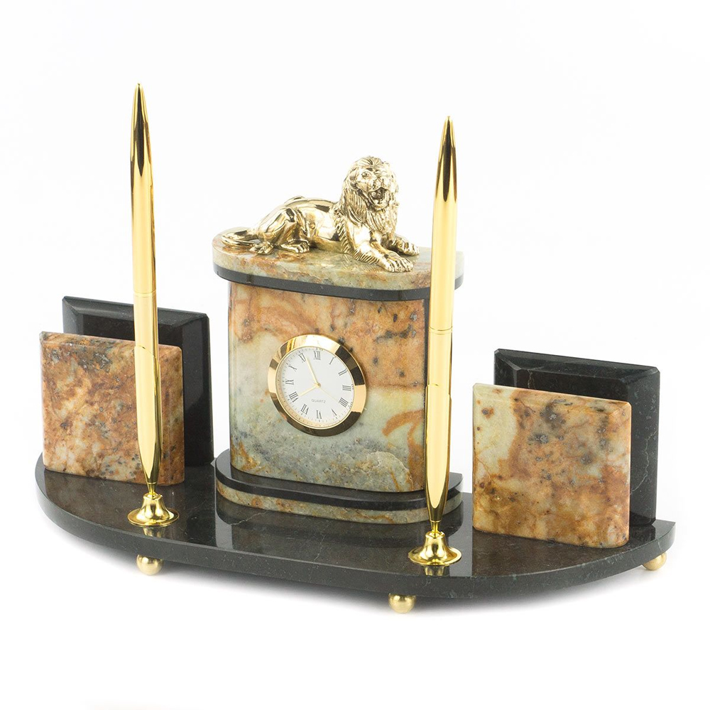 Настольный письменный набор из камня офиокальцит и бронзы с декором в виде льва Successful Leader