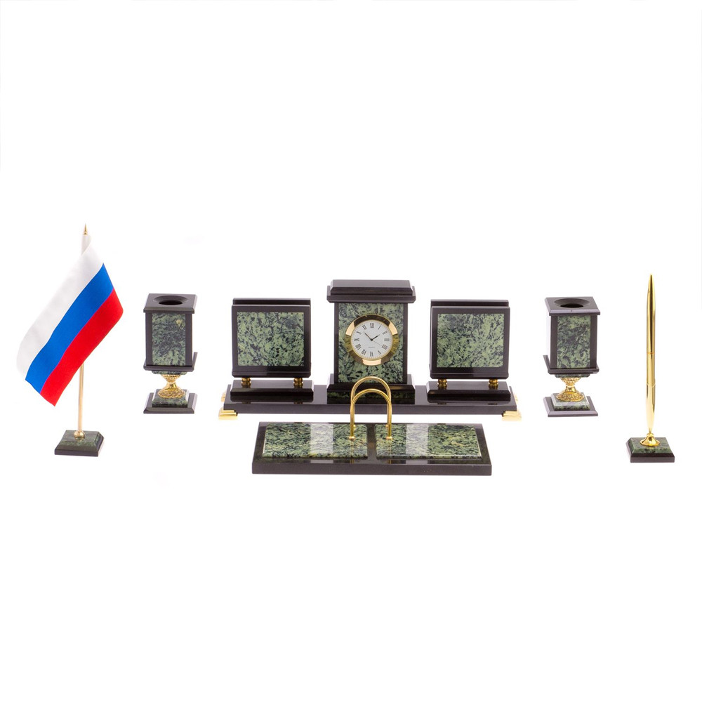 Настольный письменный набор из змеевика тёмно-зелёного цвета с декором в виде орла Successful Leader