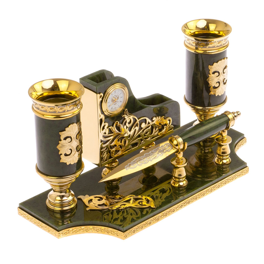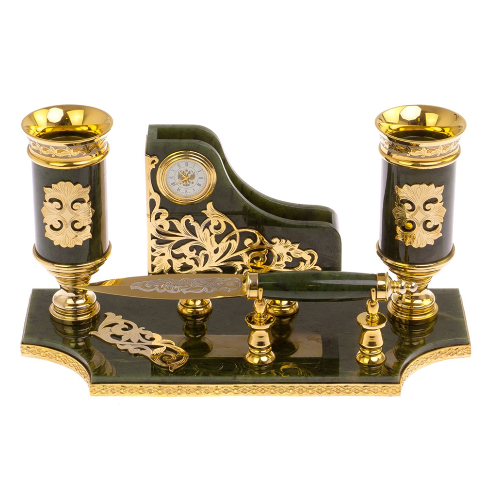 Настольный письменный набор из змеевика тёмно-зелёного цвета с декором в виде орла Successful Leader
