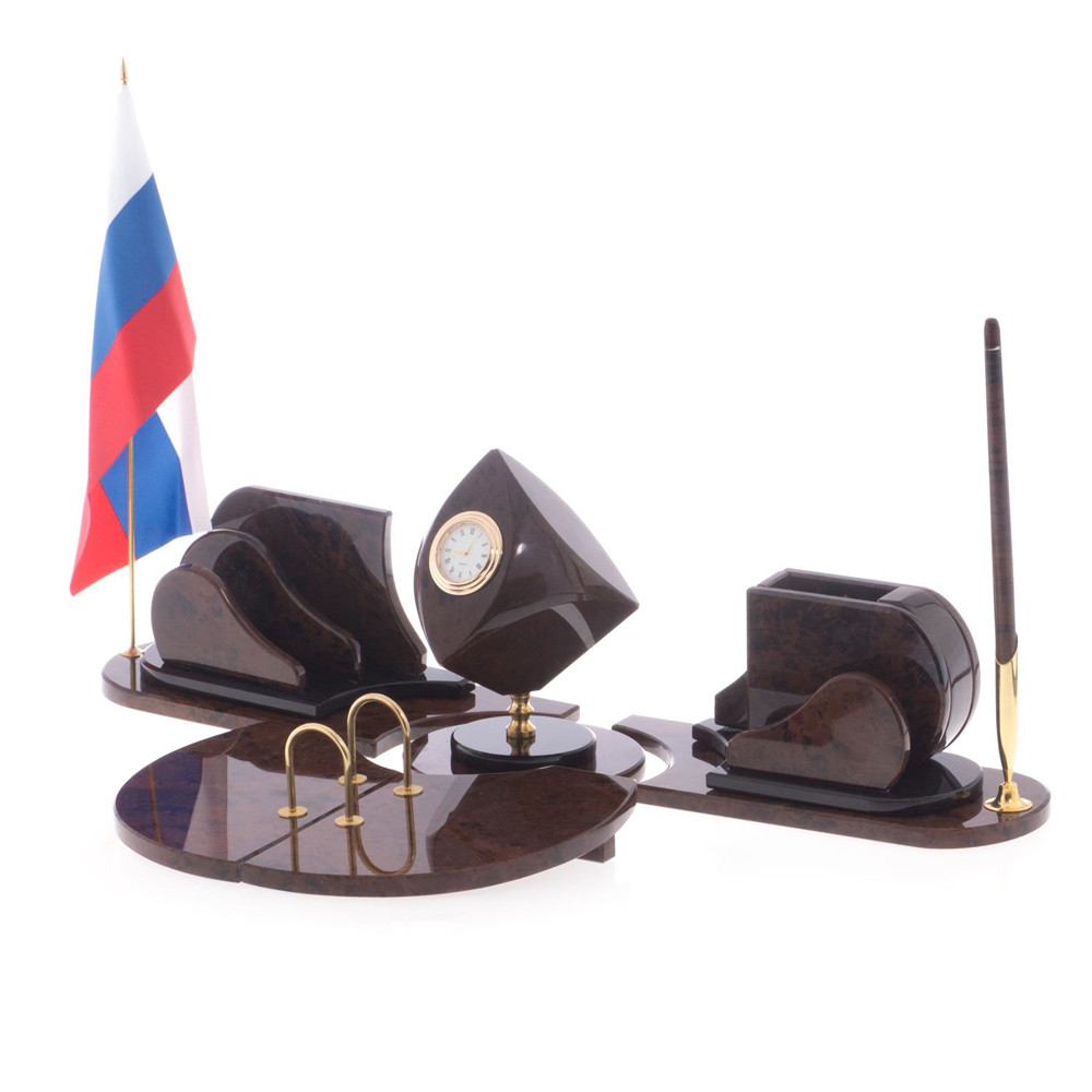 Настольный письменный набор из природного камня обсидиана коричневого Team leader
