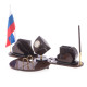 Комплектация: Центральная часть с часами 1 шт. Визитница 2 шт. Флагшток 1 шт. Флаг 1 шт. Шариковая ручка 1 шт. Подставка под перекидной календарь 1 шт. Дуги 2 шт. Картонная коробка 1 шт.