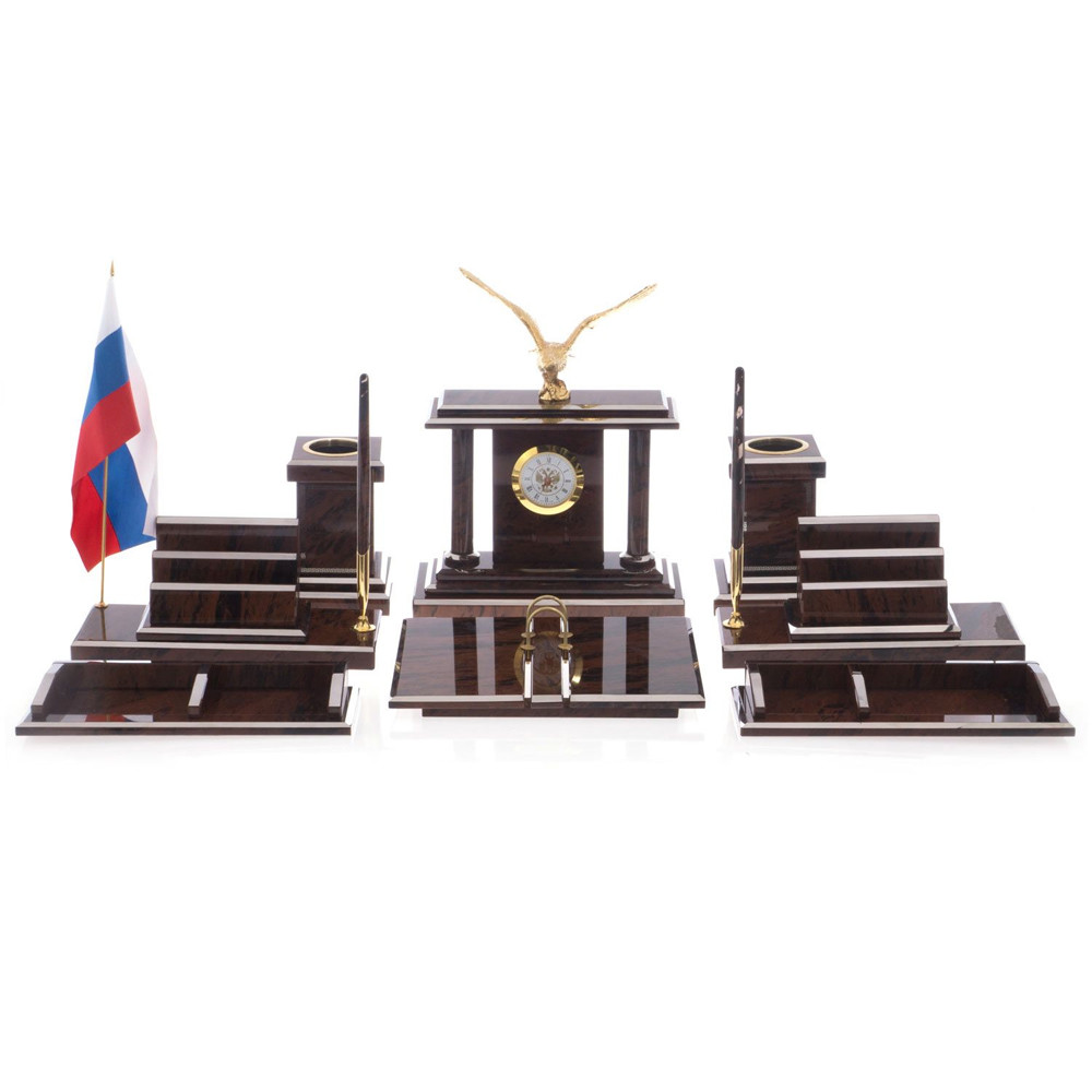 Настольный письменный набор из природного камня обсидиана с декором в виде орла Golden Eagle