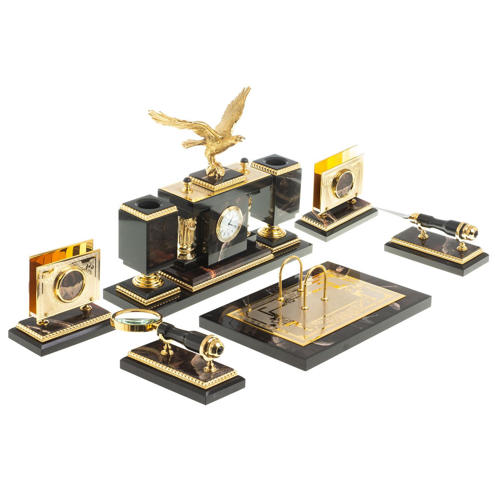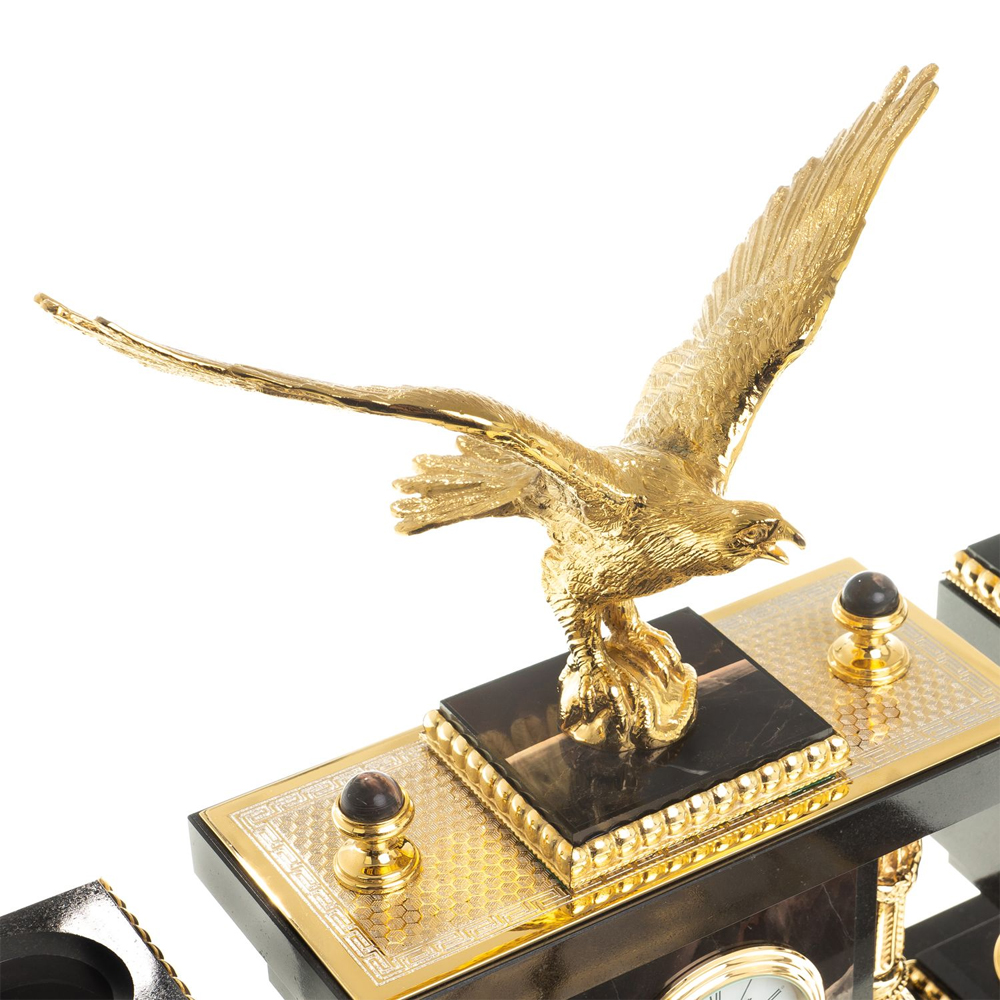 Настольный письменный набор из змеевика тёмно-зелёного цвета с декором в виде орла Successful Leader