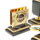 Комплектация: Часы 1 шт. Подставка под календарь 1 шт. Визитница 2 шт. Подставка под лупу и нож 2 шт. Лупа 1 шт. Нож 1 шт. Кейс 1 шт.