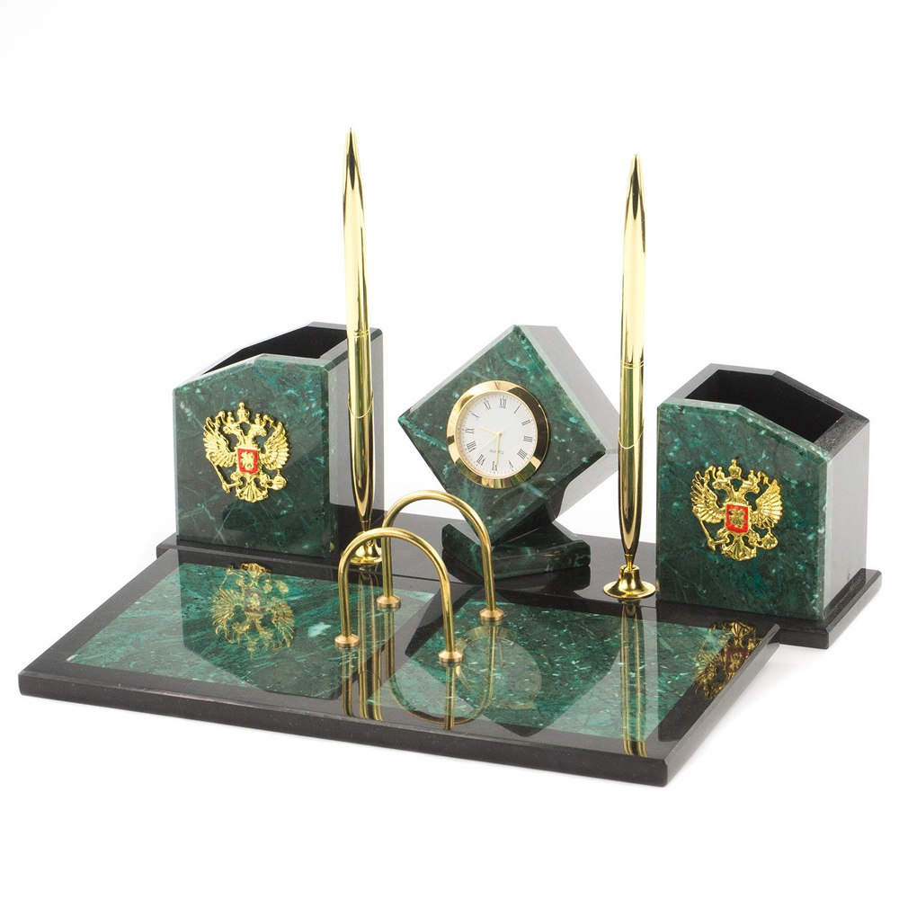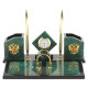 Настольный письменный набор из змеевика с часами и гербом Successful Leader