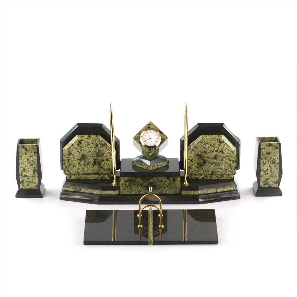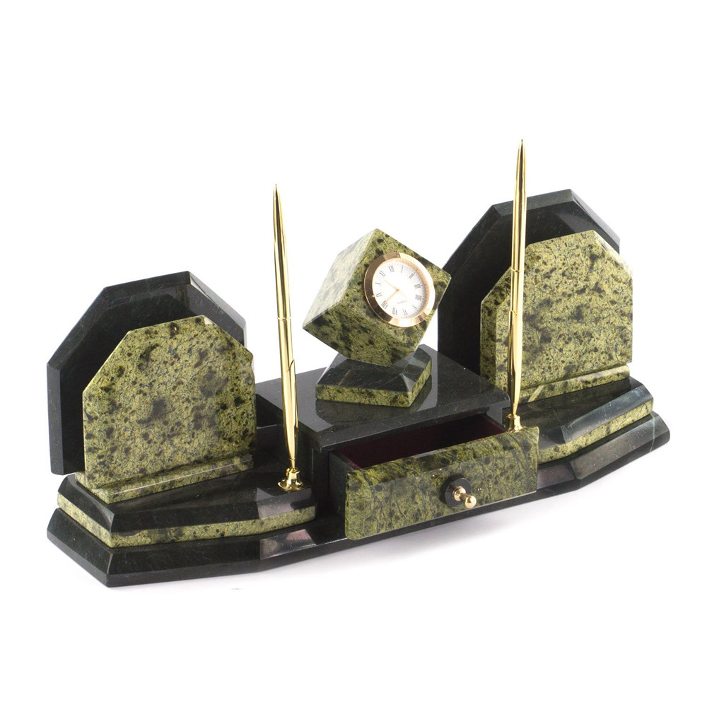 Настольный письменный набор из змеевика с часами и таблетницей Successful Leader