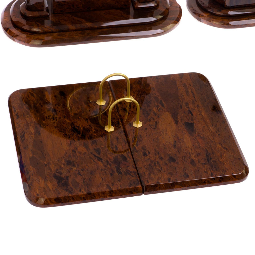Настольный письменный набор с часами из природного камня обсидиана Contract Extended