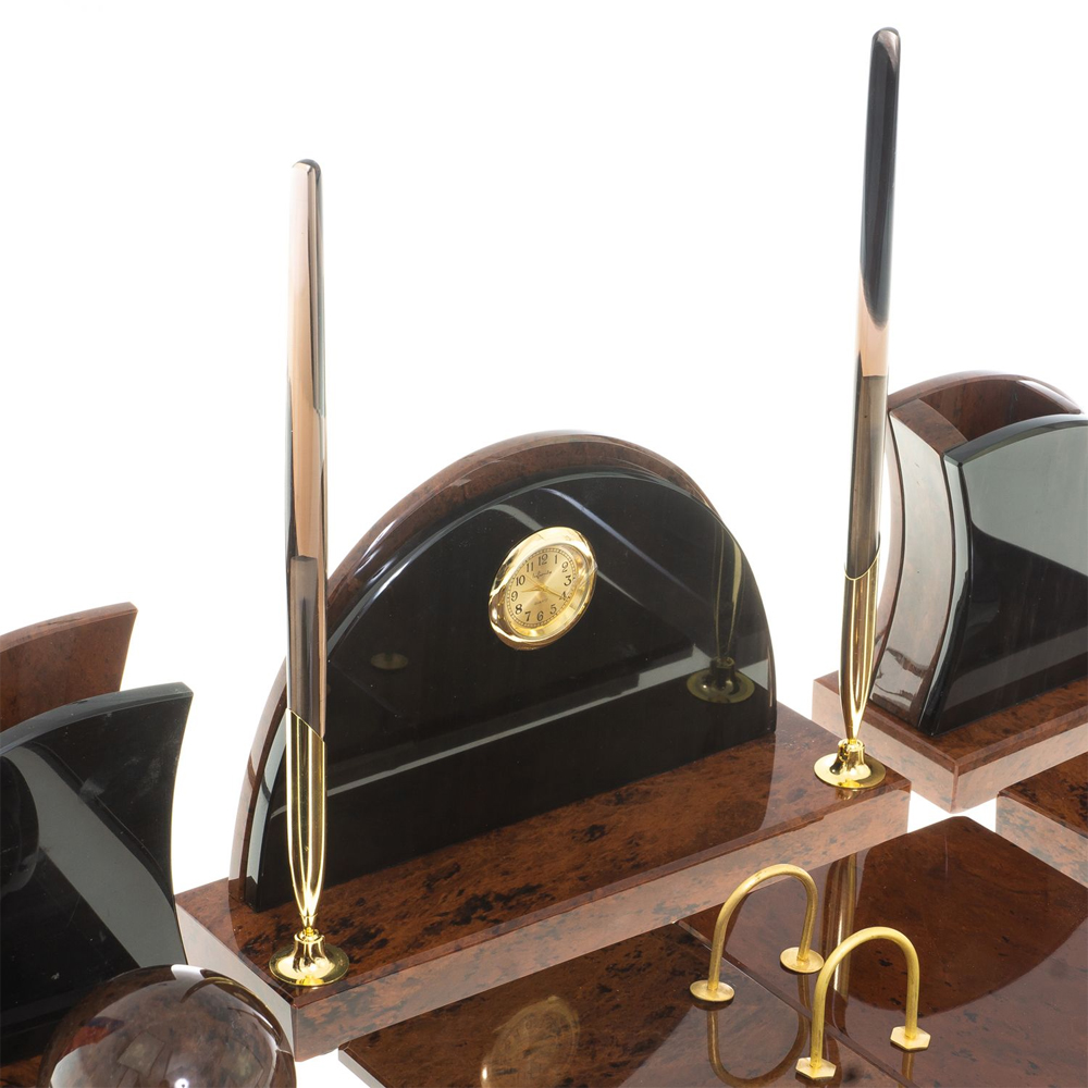 Настольный письменный набор с часами из природного камня обсидиана Oval Office