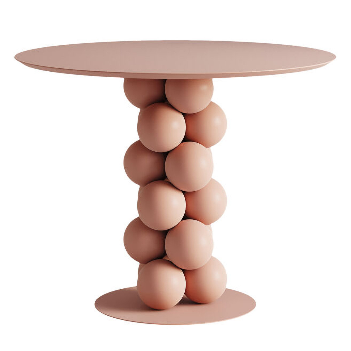 Изысканный обеденный стол «БабблТи» напоминает о нежном удовольствии от чаепития. Его опора, состоящая из округлых элементов, словно шарики популярного напитка, дарит легкость и игривость дизайну. Матовые поверхности из МДФ и металла подчеркивают утонченную палитру, которая подойдет любому интерьеру. Покрытие эмалью и лаком обеспечивает долговечность и элегантный блеск. Этот стол – символ креатива и вкуса. «Ти» здесь значит не только «чай», но и «тайм» – время для общения, улыбок и приятной атмосферы за трапезой.