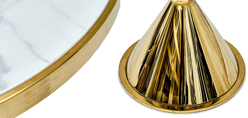Столешница изготовлена из натурального мрамора с уникальным рисунком камня, что делает каждый стол неповторимым. К тому же, он гарантирует высокую прочность и устойчивость к износу.