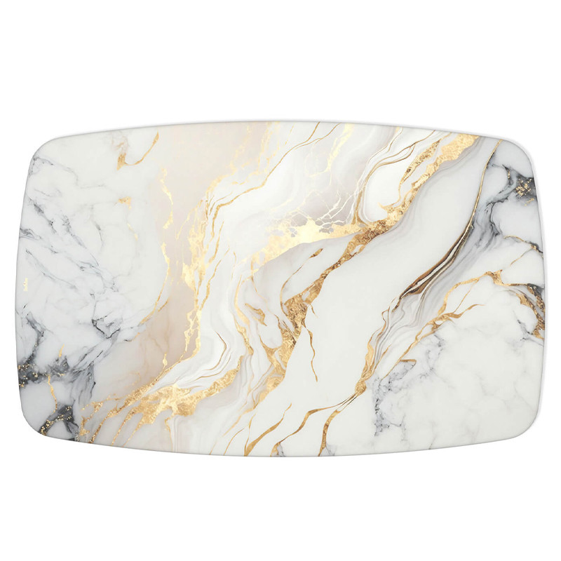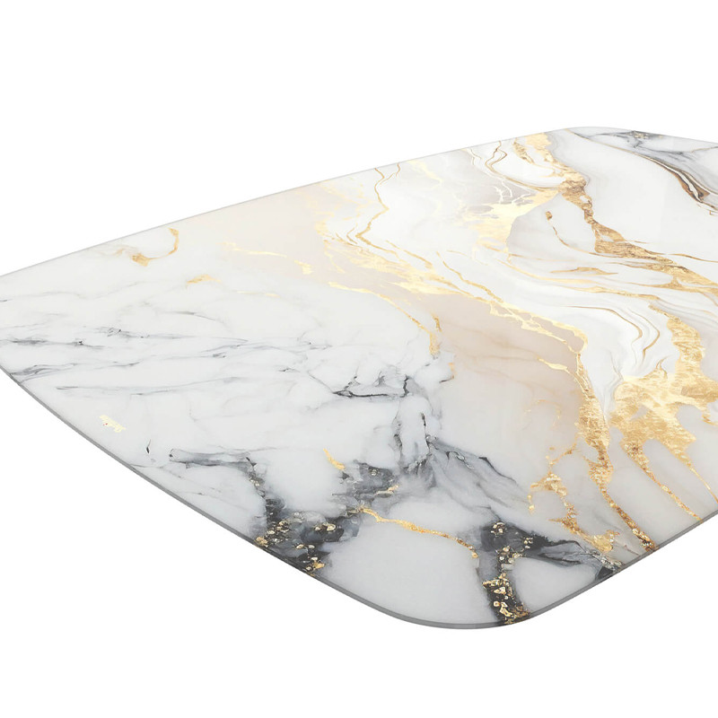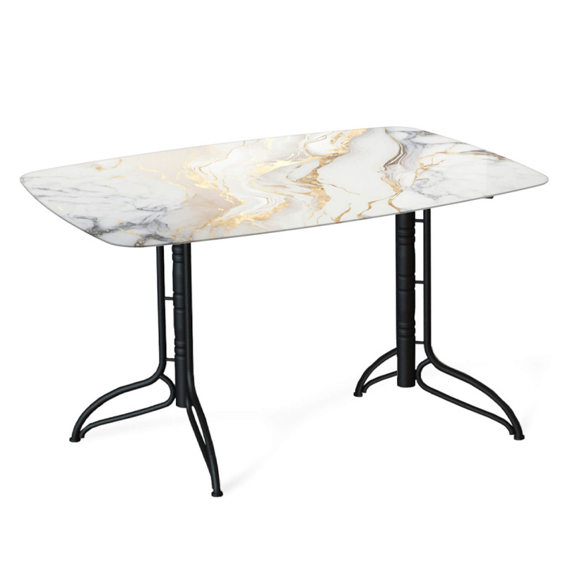 Обеденный стол с прямоугольной столешницей из стекла на черных металлических ножках White Marble