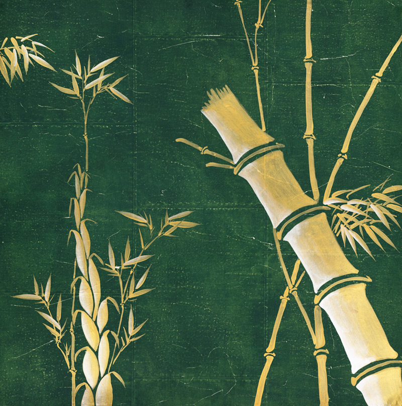 Обои ручная роспись Bamboo Golden on Edo Green India tea paper