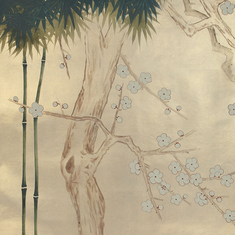 Обои ручная роспись Bamboo River Blossom Original colourway on Brushed Gold gilded paper