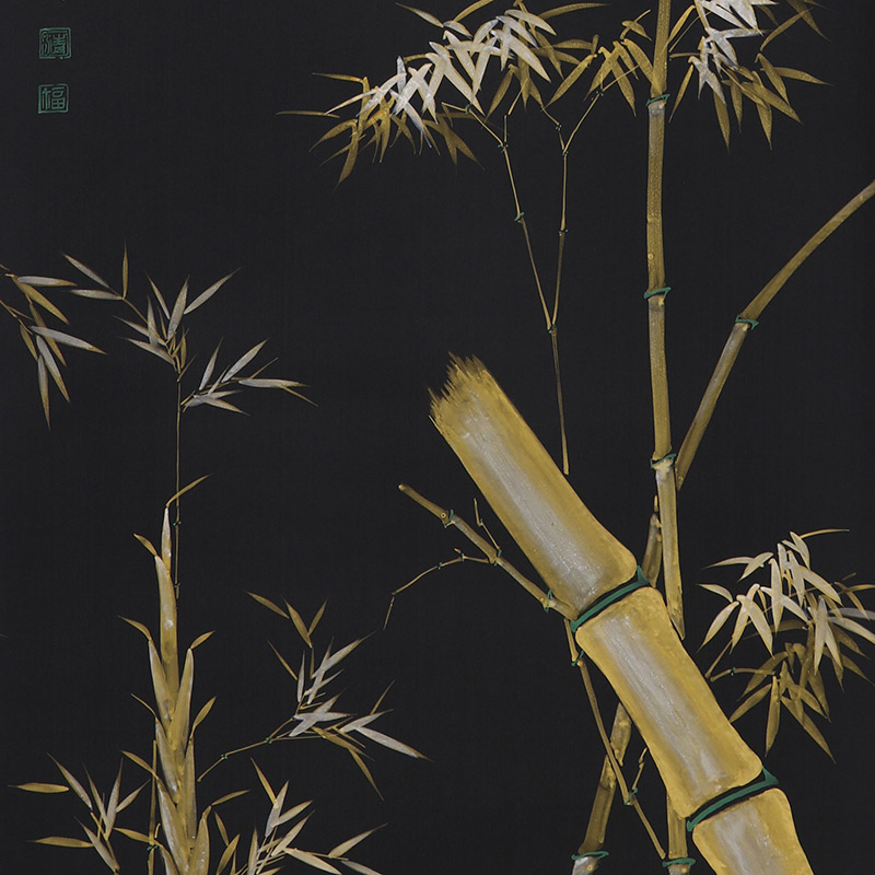 Обои ручная роспись Bamboo Special Colourway on Pitch dyed silk