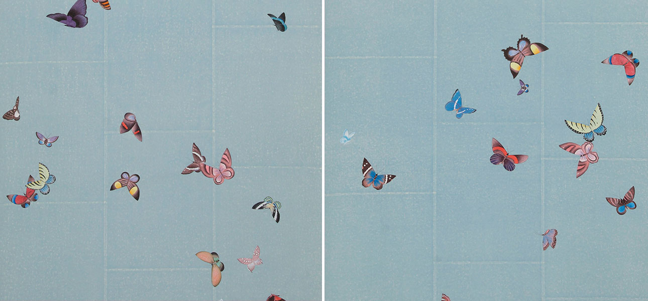 Обои ручная роспись Butterflies Icarus on Azure India tea paper