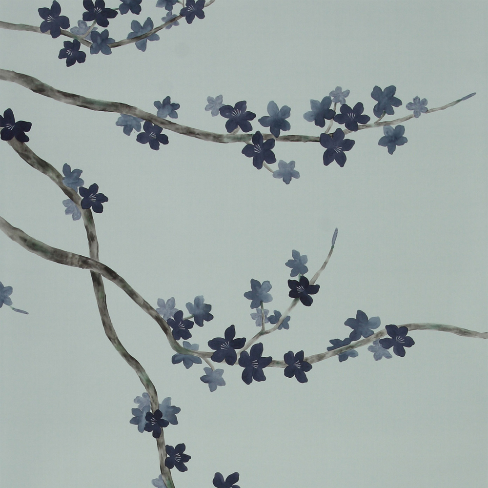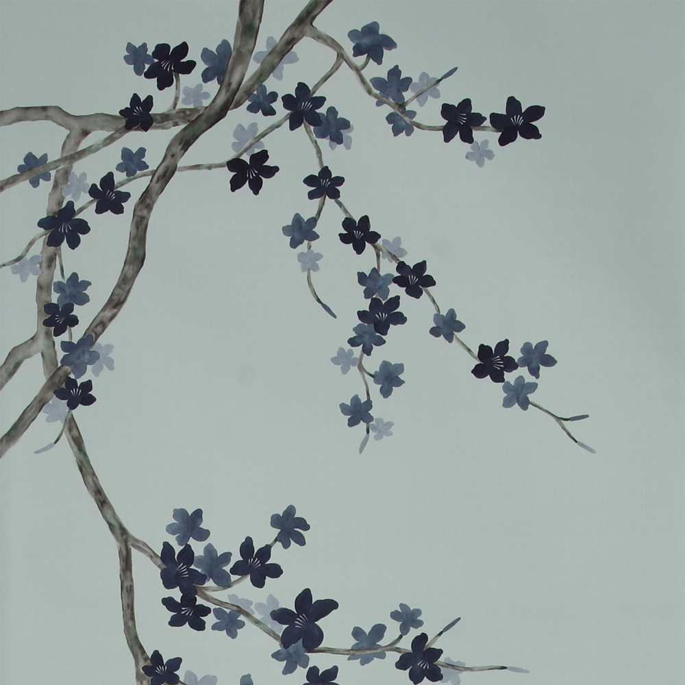 Обои ручная роспись Cherry Tree Original colourway on Adam Grey dyed silk