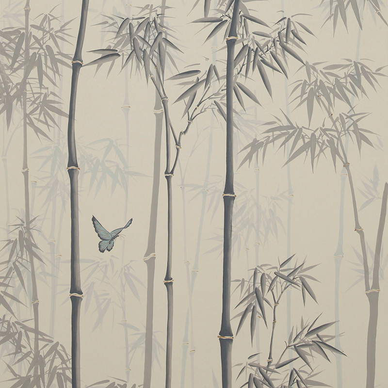 Обои ручная роспись Distant Bamboo Special Colourway on white dyed paper