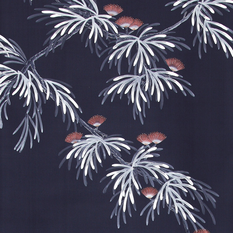 Обои ручная роспись Silk Tree Special Colourway on Empire Blue dyed silk