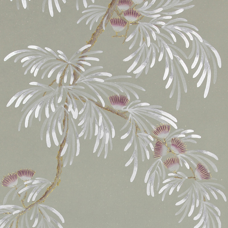 Обои ручная роспись Silk Tree Special Colourway on grey painted Xuan paper