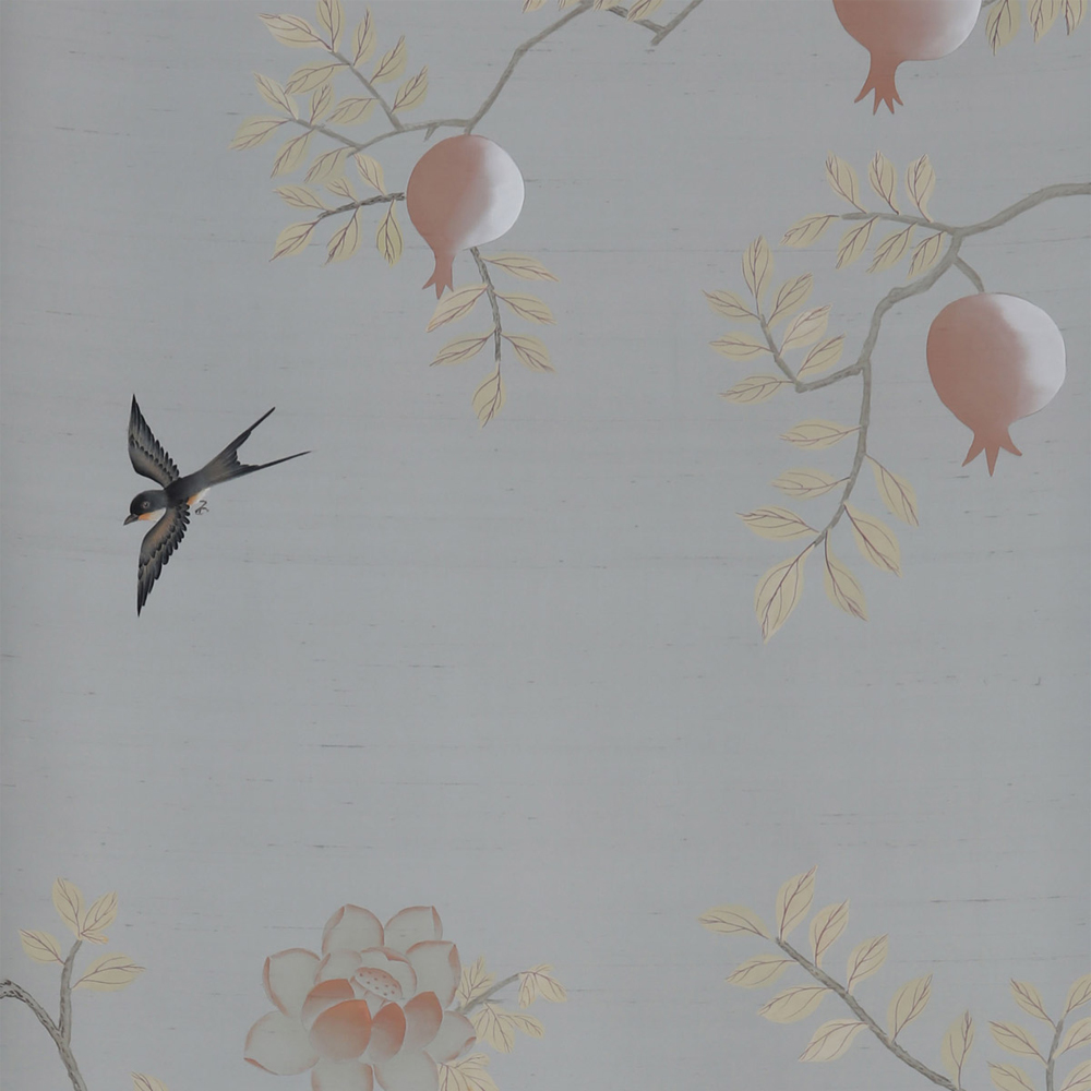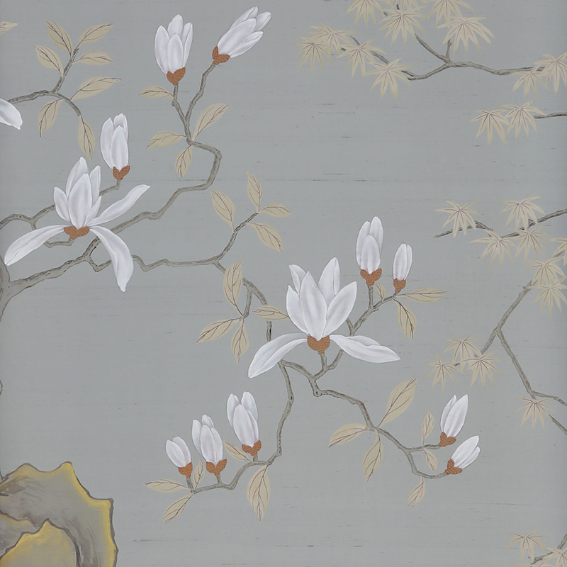 Обои ручная роспись Summer Night Blossom Colourway SC-122 on Wood Ash slub silk