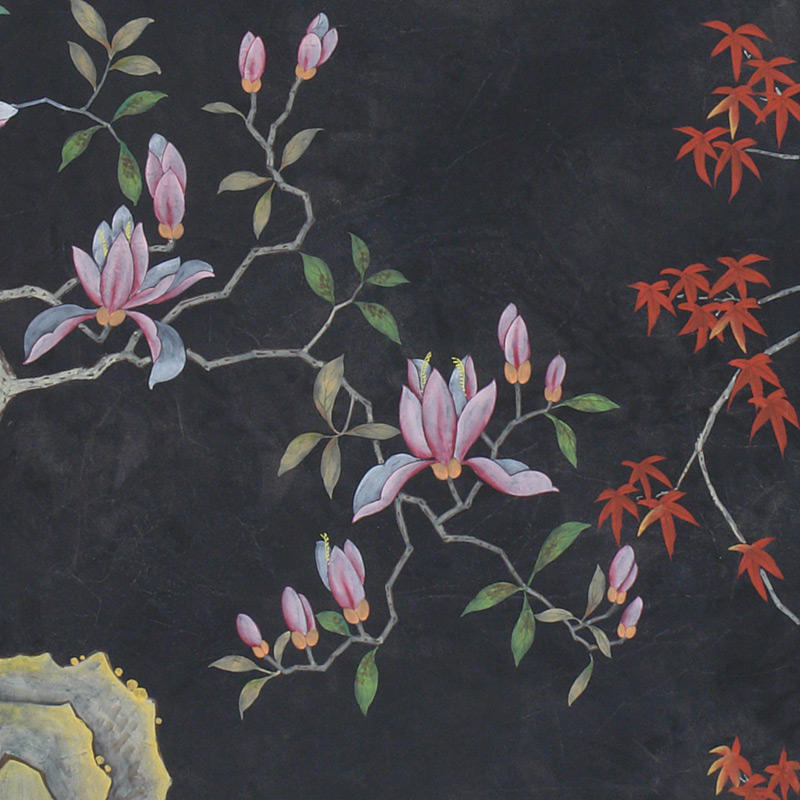 Обои ручная роспись Summer Night Blossom Original colourway on Edo Night painted silk