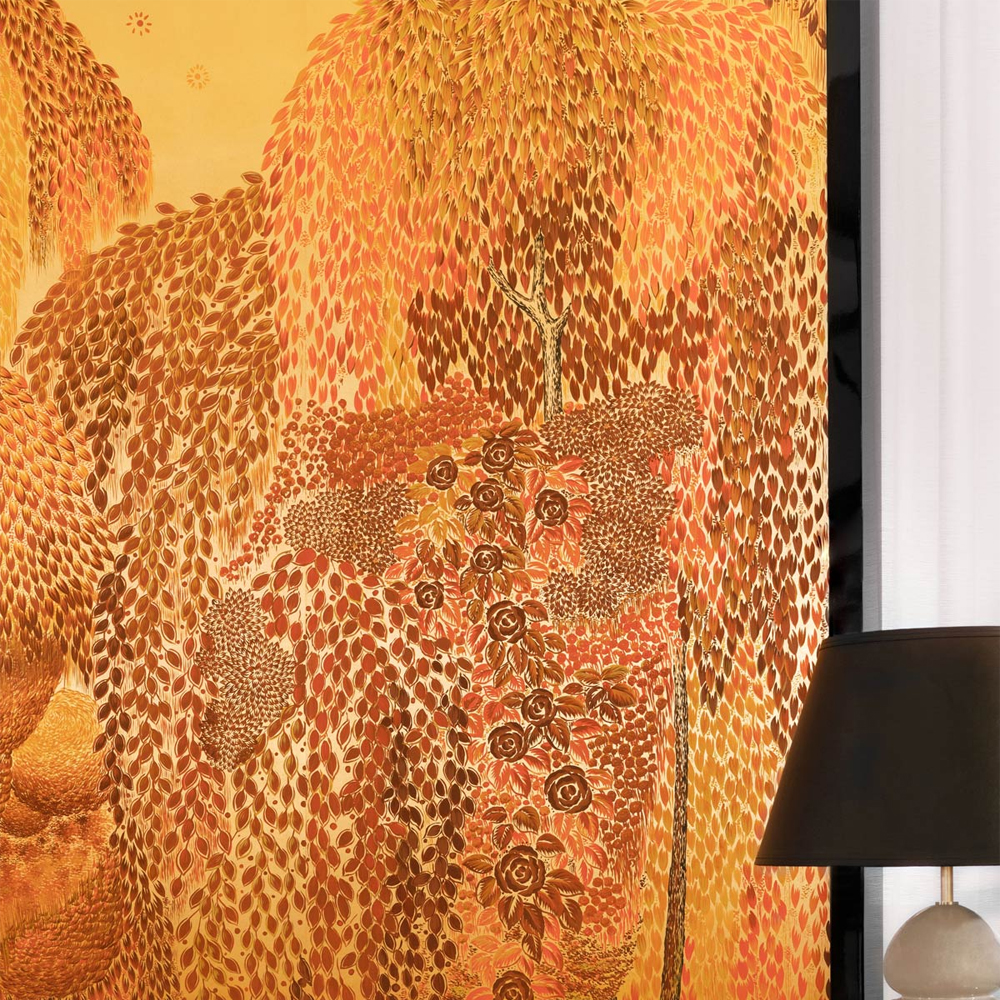 Обои ручная роспись в стиле Арт-деко Hippolyta’s Forest Colourway 263 on Deep Rich Gold gilded paper