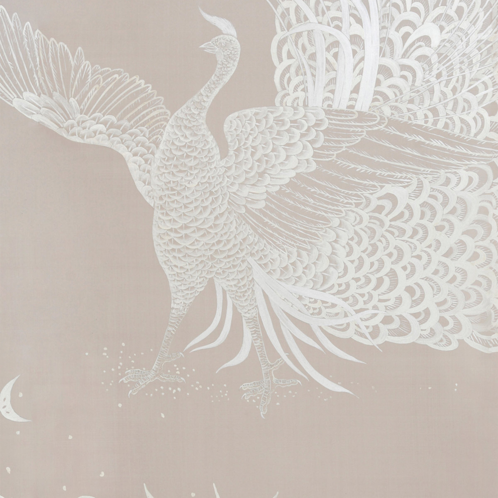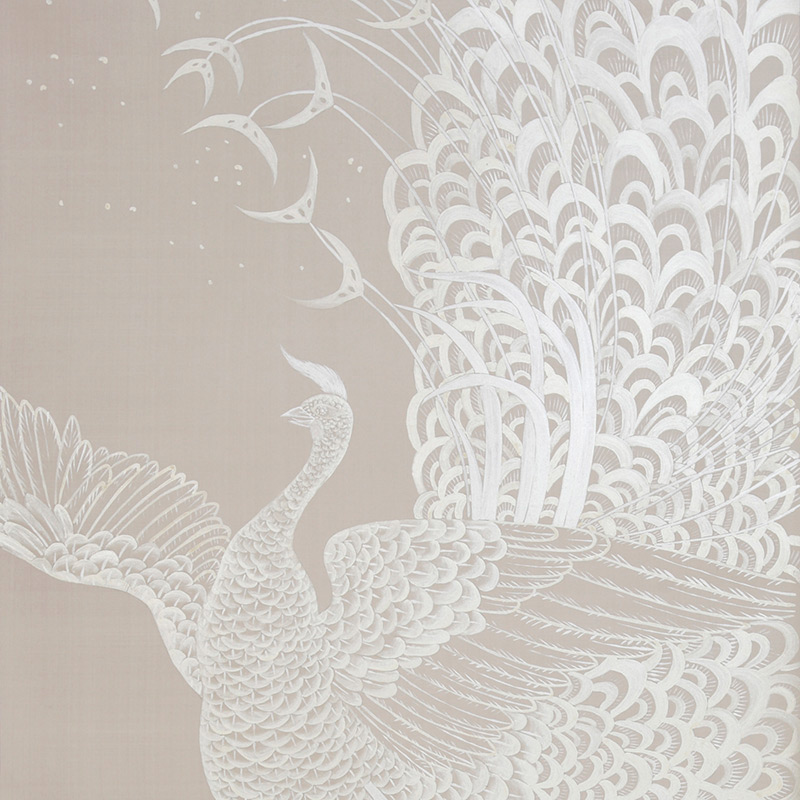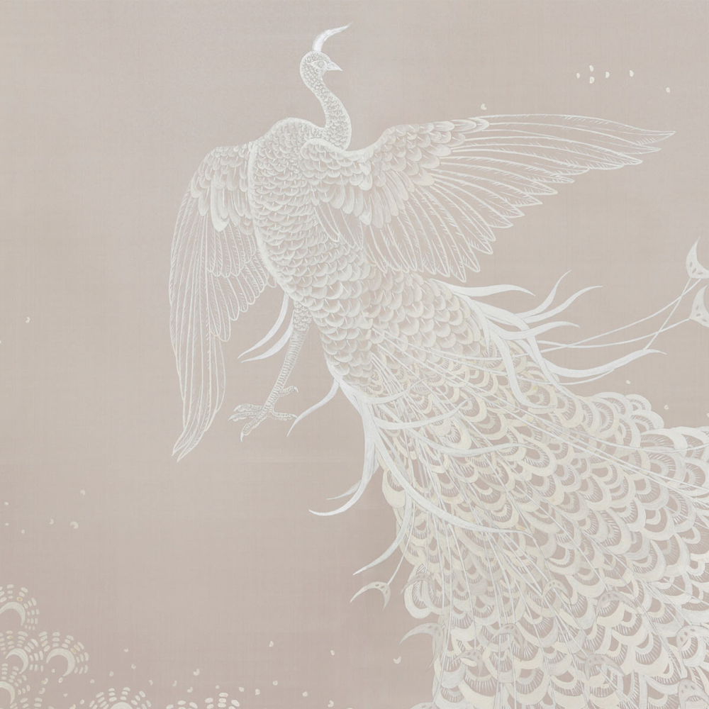 Обои ручная роспись в стиле Арт-деко Whistler Peacocks Special Colourway on Almost Mauve dyed silk