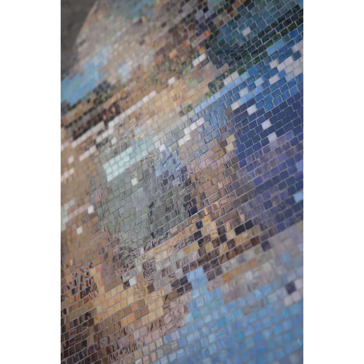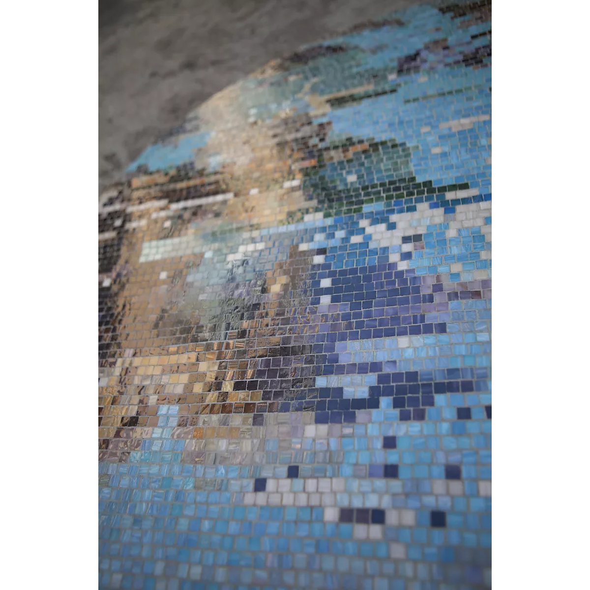 Насыщенные оттенки и плавные переходы панно «Azure» создают ощущение движения морской стихии. Мозаика, сложенная из бликов художественного стекла, будто дышит живым светом, наполняя пространство гармонией. Гладкая текстура стекла подчёркивает изящество исполнения. Каждый фрагмент — это капля, которая сливается с общей картиной, создавая воздух, глубину и динамику морской глади. «Azure» — символ спокойствия и силы природы. Это произведение искусства переносит зрителя к берегам безмятежности, где мягкий шелест волн встречает первые лучи рассвета.