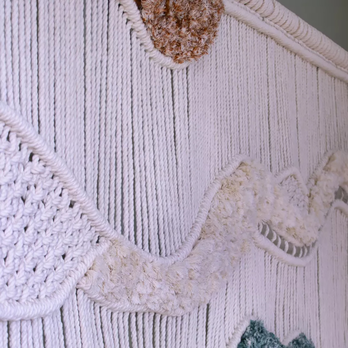 Панно-макраме «JUPITER» словно приглашает открыть для себя новые горизонты. Его линии и текстуры напоминают о волшебных пейзажах далеких планет, где царит гармония цвета и формы. Мягкость хлопка и шерсти мериноса создают удивительное ощущение тепла и уюта. Ручная окраска придает панно уникальность, а деревянная основа добавляет естественности. «JUPITER» наполнен мечтательностью: взгляни на него — и почувствуешь, как мысли уносятся вдаль навстречу неизведанному, оставляя за спиной будничные заботы.