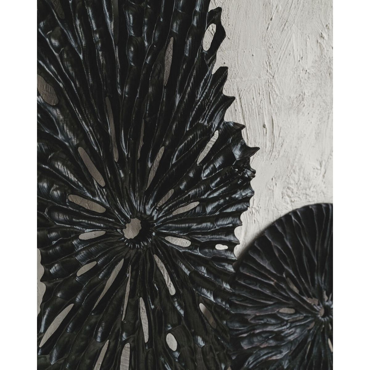 Объект выполнен из древесины целого куска белого ясеня, погибшего при строительстве жилого квартала, ручная резьба, обжиг и покрытие из черного масла. Биологическая материя это один из главных признаков нашей идентичности. Мы с легкостью узнаем жизнь, и легко отличаем живые, или бывшие живыми формы, от объектов природы неживой. Сама их структура, фактура и метафизические ощущения вызывают в человеке прямой отклик. С этим откликом автор стремиться работать в своих объектах из цикла метаморфоза.