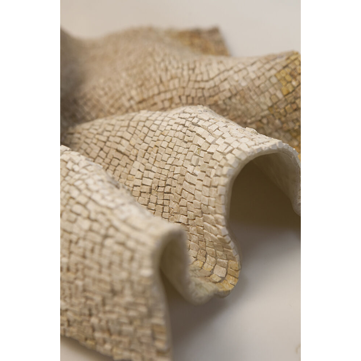 «Nude 4» из серии «Emorpha» выполнено из натурального мрамора, где мозаика проявляет динамику и пластичность, будто ткань. Несмотря на твёрдость материала, она передает легкость и движение. Идеальные линии и фактура создают ощущение, что камень оживает, играя со светом и тенью. Каждая деталь выражает бесконечный ритм, наполняя работу энергетикой. Эта композиция увлекает строгой геометрией и органичными формами. Неподвижность мрамора превращается в живое дыхание искусства, завораживая зрителя.