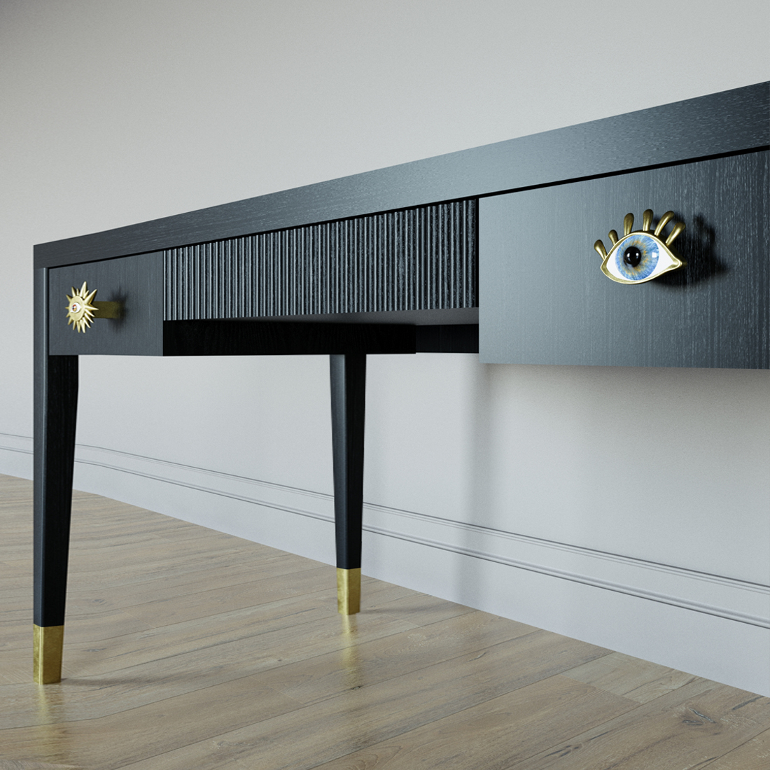 Письменный стол Elsa Dreams Black Шпон дерево с двумя ящиками