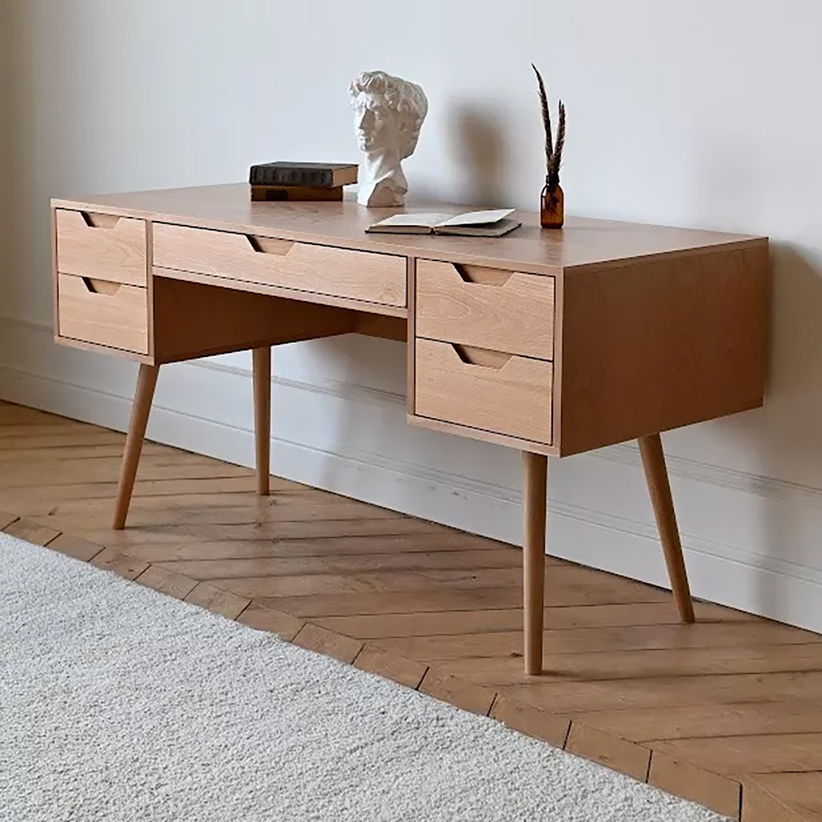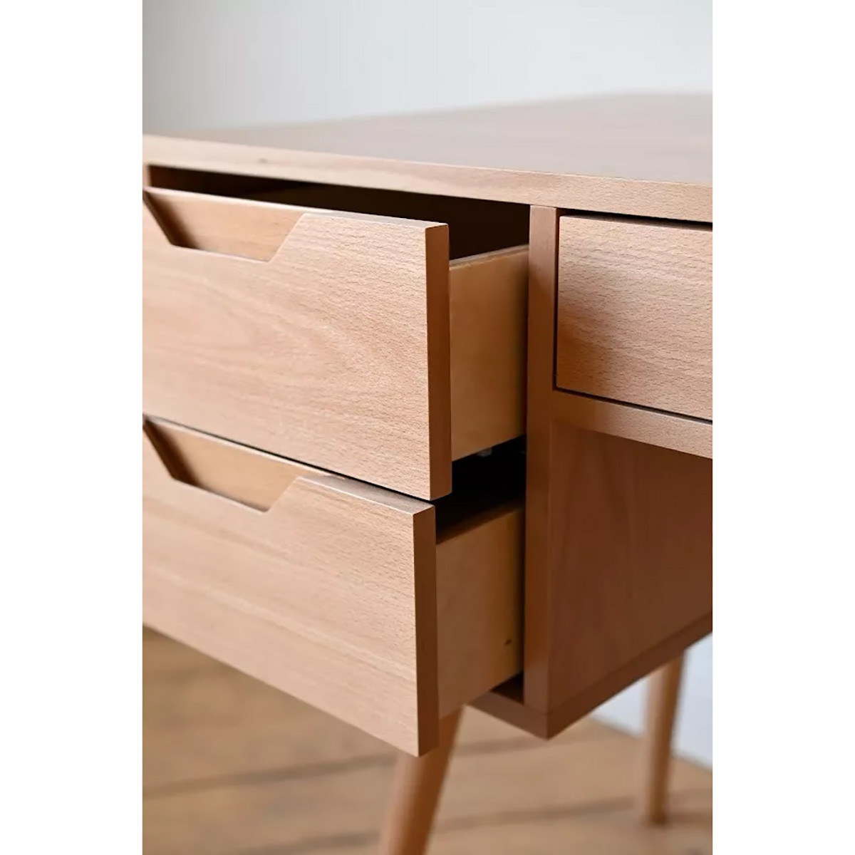 Письменный стол «STL 09» изготовлен из бука в светлом, природном оттенке, который добавит уюта и легкости любому интерьеру. Его дизайн сочетает в себе простоту и функциональность, создавая комфортную рабочую атмосферу.
