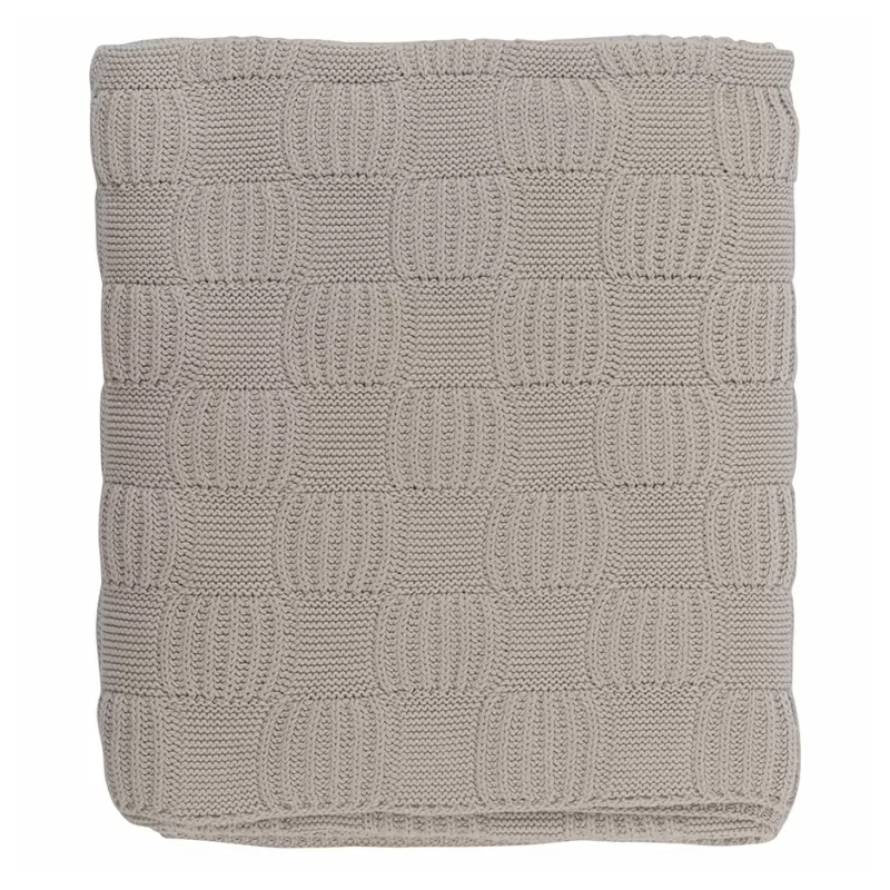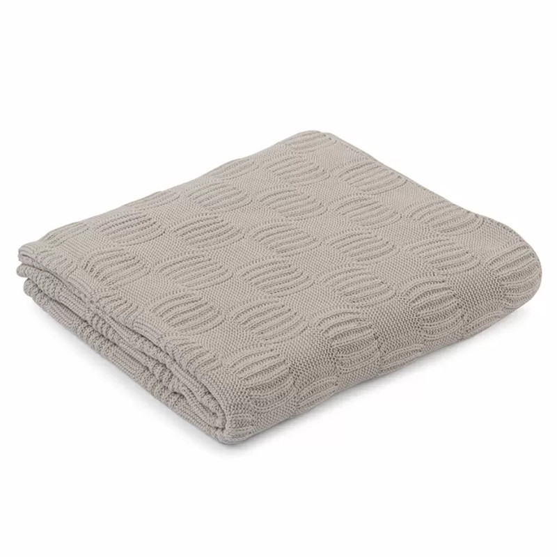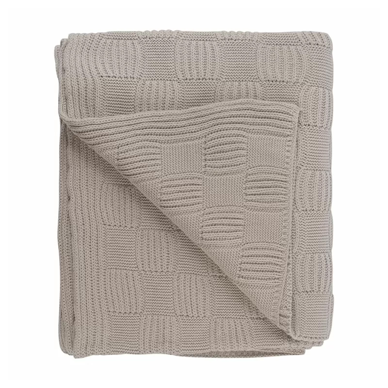 Плед из хлопка рельефной вязки бежево-серого цвета Waffle Comfort