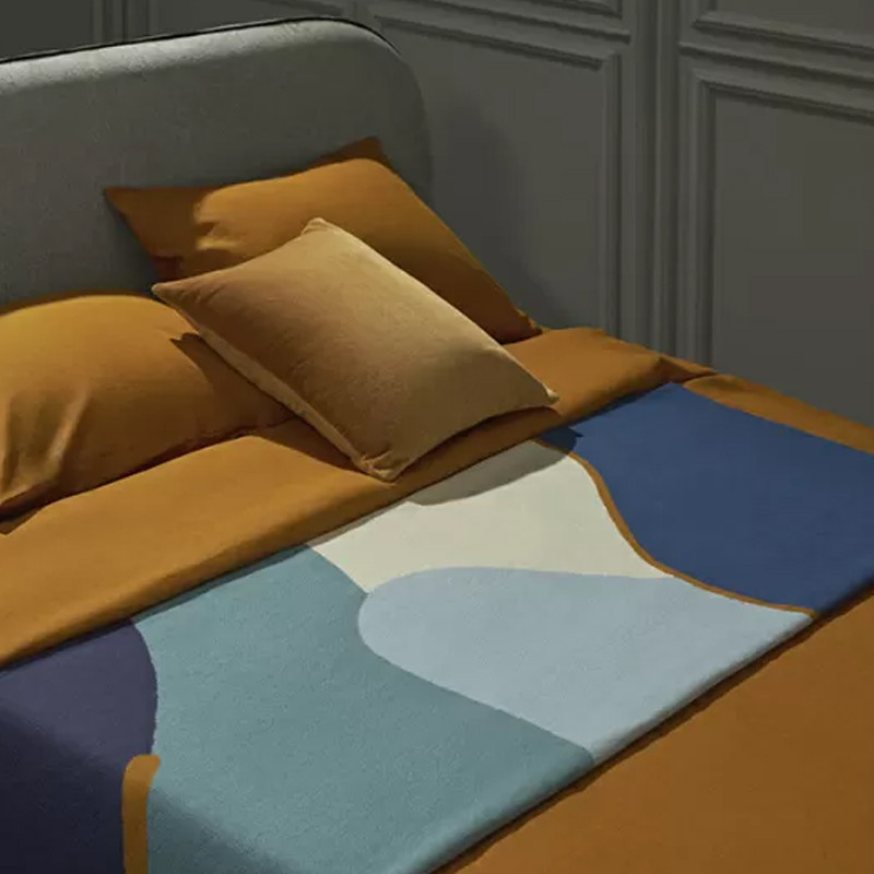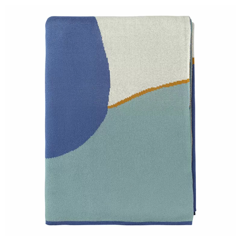 Плед из хлопка синего цвета с абстрактным принтом Elysian Flow Ocean