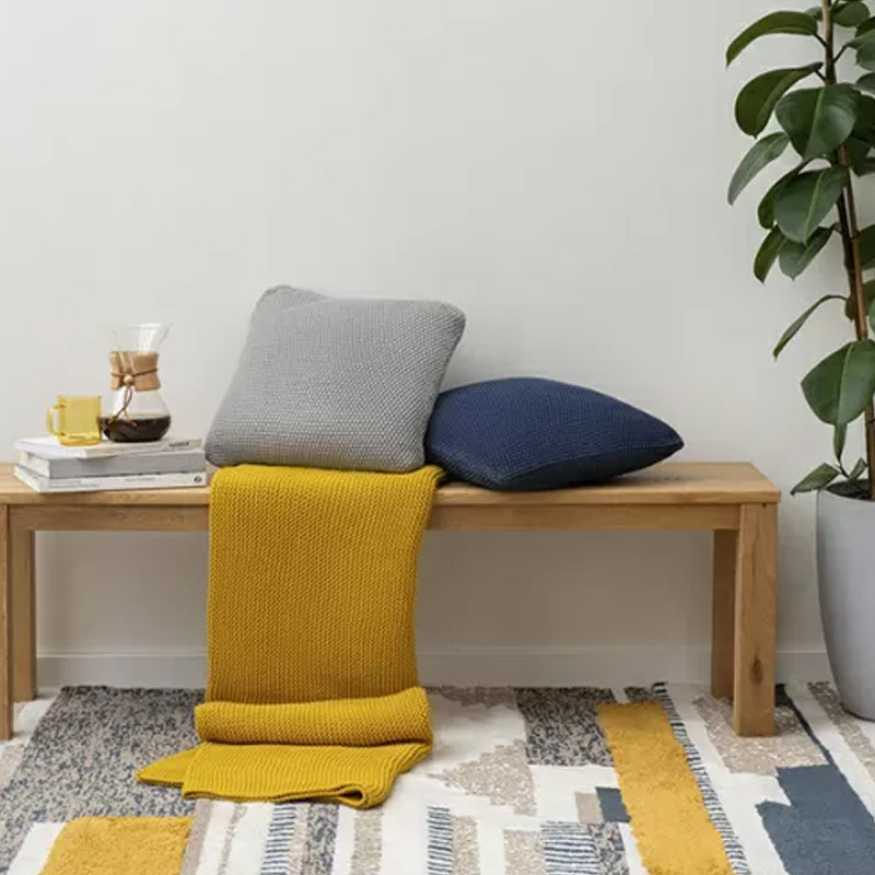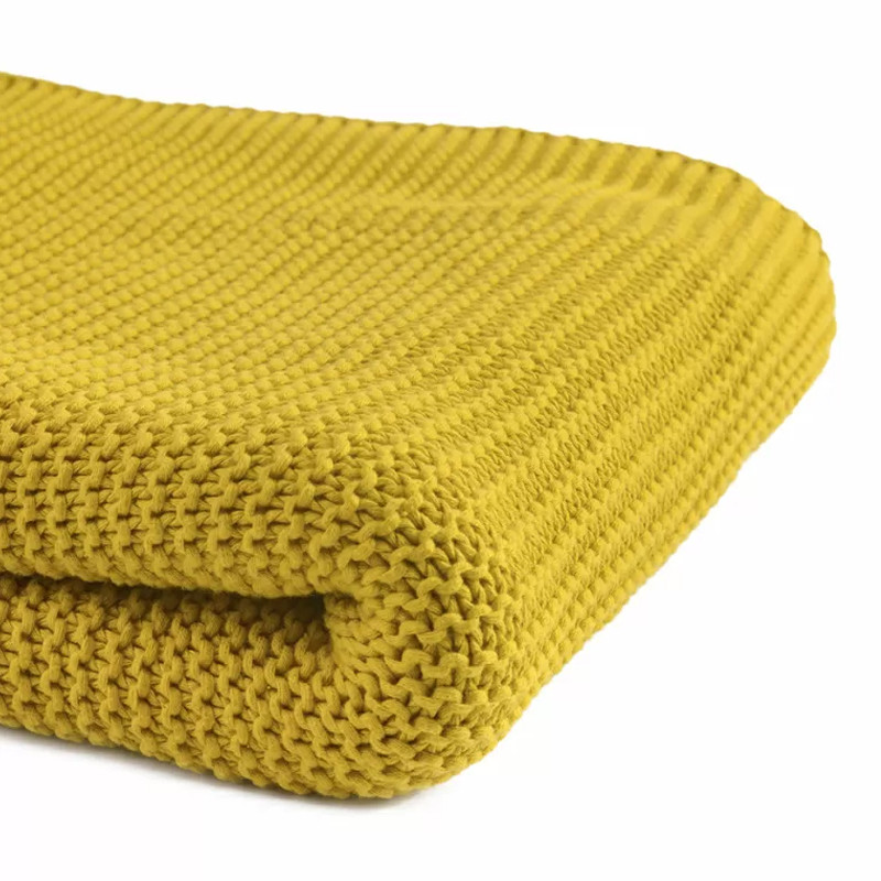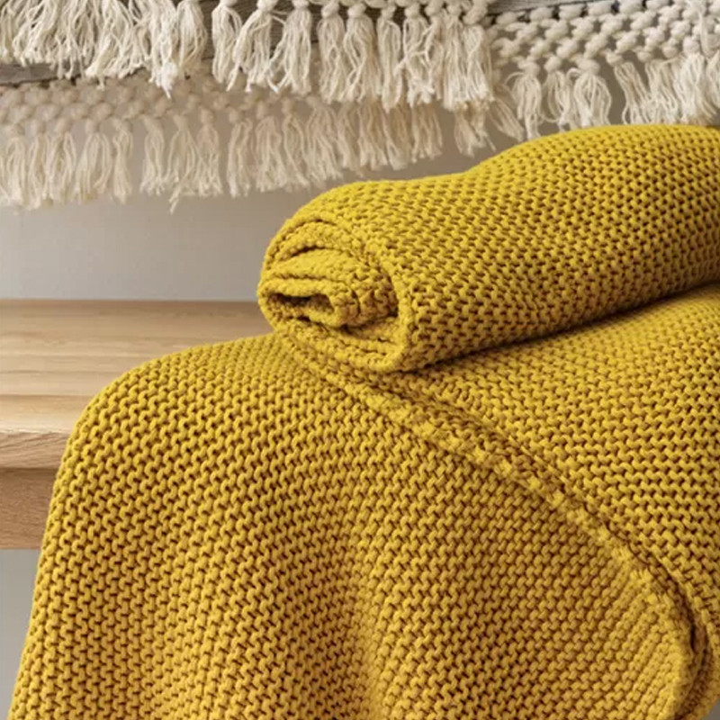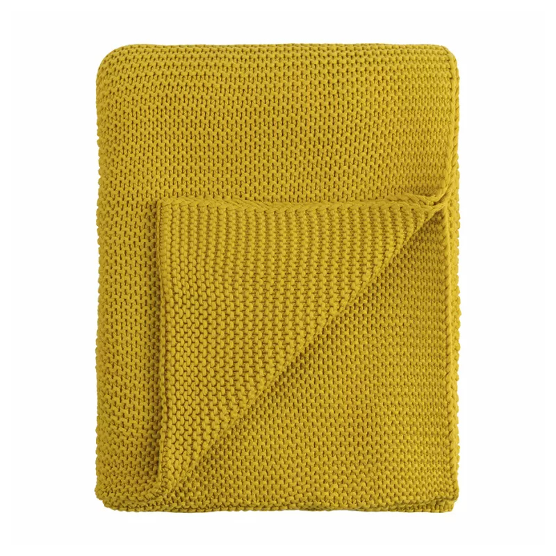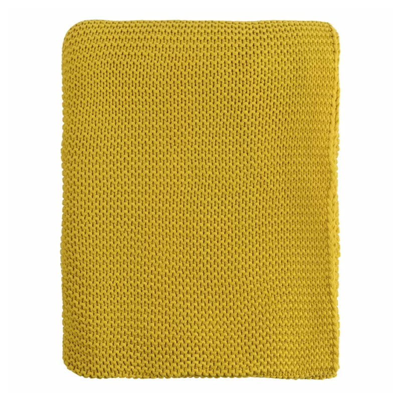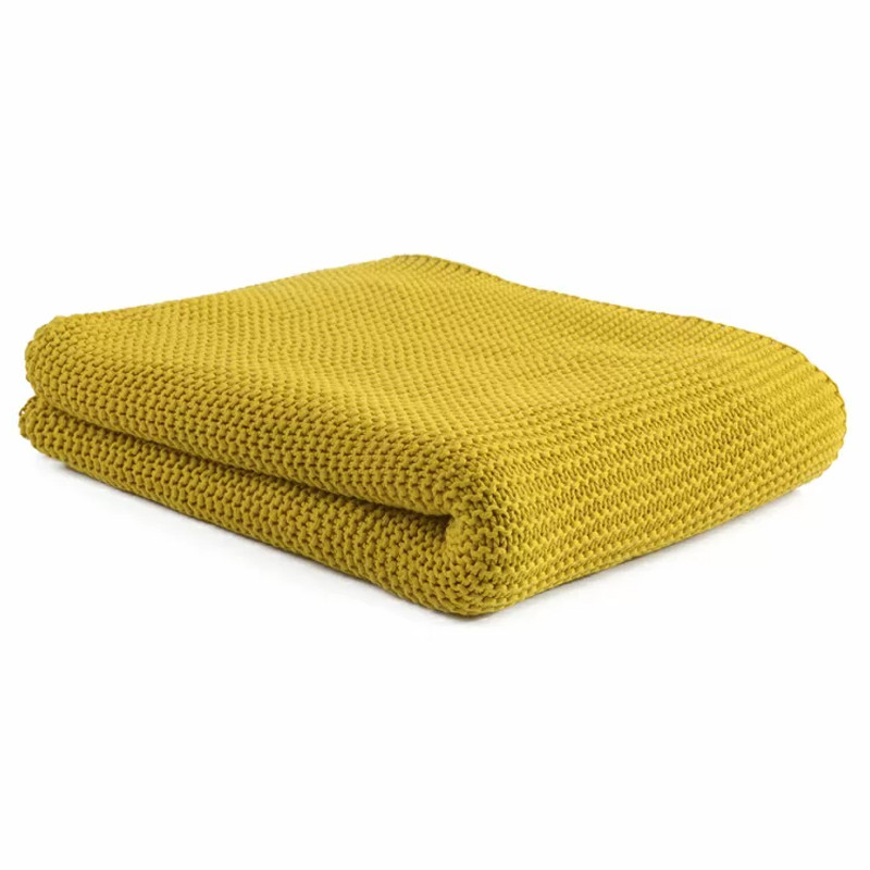Плед из хлопка жемчужной вязки горчичного цвета Waffle Comfort