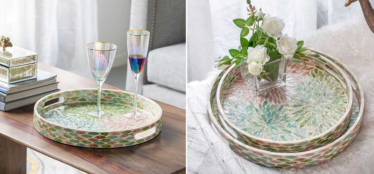Поднос круглый с инкрустацией Louise