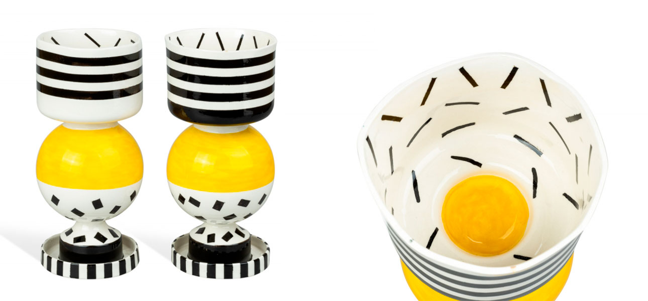 Оригинальные статуэтки в стиле Мемфис. В них можно поставить свечи и использовать их как подсвечники. А еще их можно перевернуть и поставить вверх ногами.