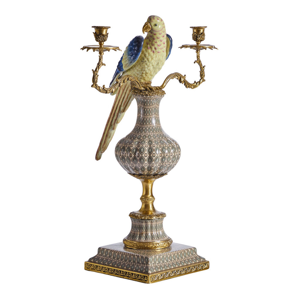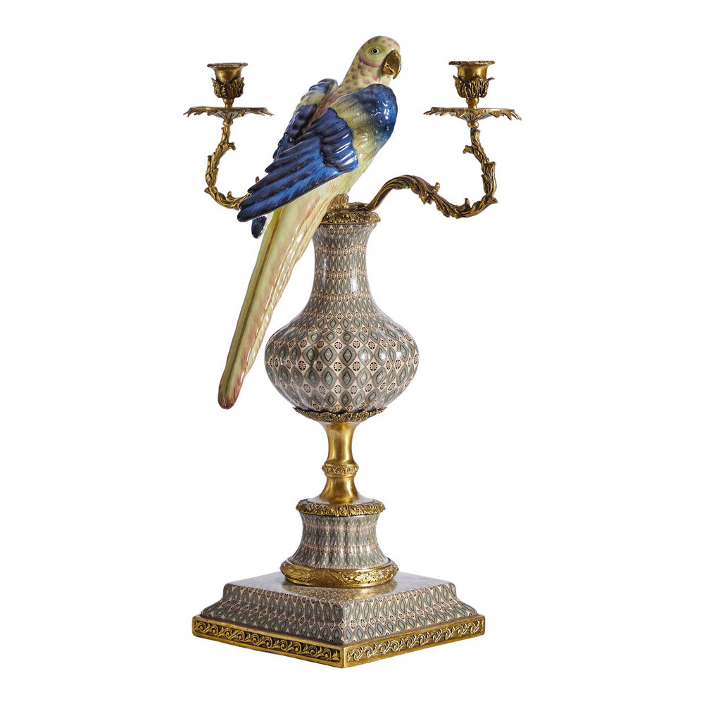 Подсвечникв образе попугая из фарфора с бронзовыми элементами Eden Garden