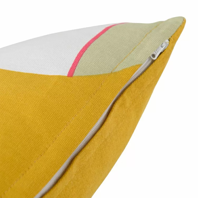 Подушка декоративная хлопковая горчичного цвета с абстрактным принтом Elysian Flow Sunset