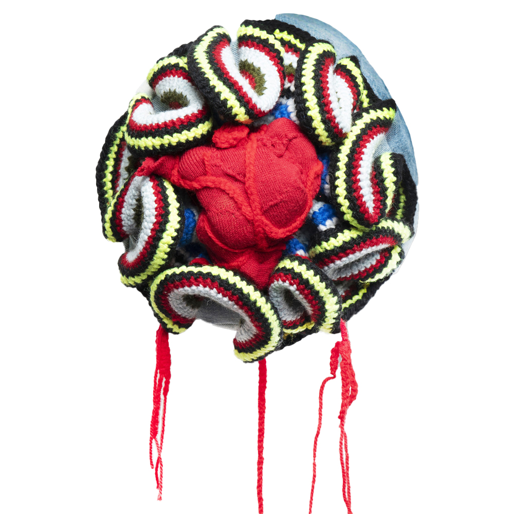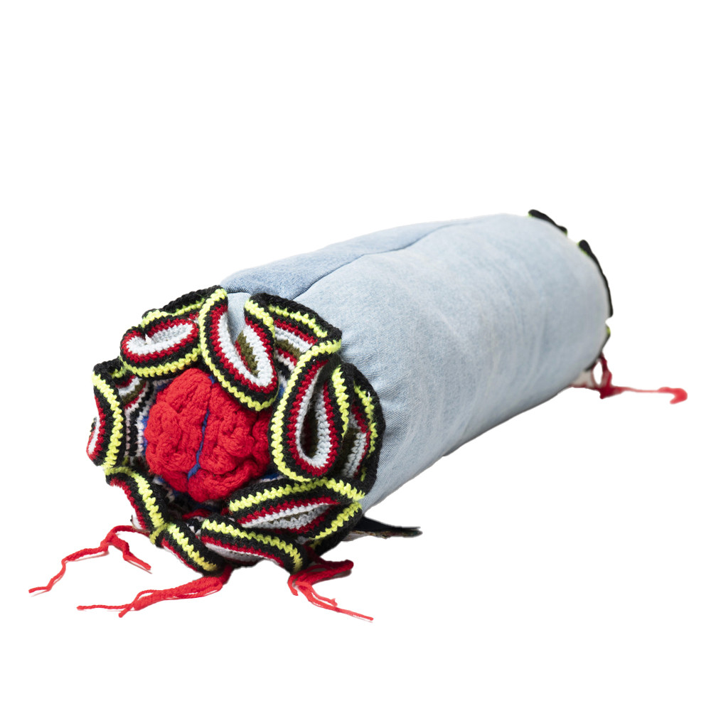 Подушка из джинсовой одежды и вязания Heart&Brain 2