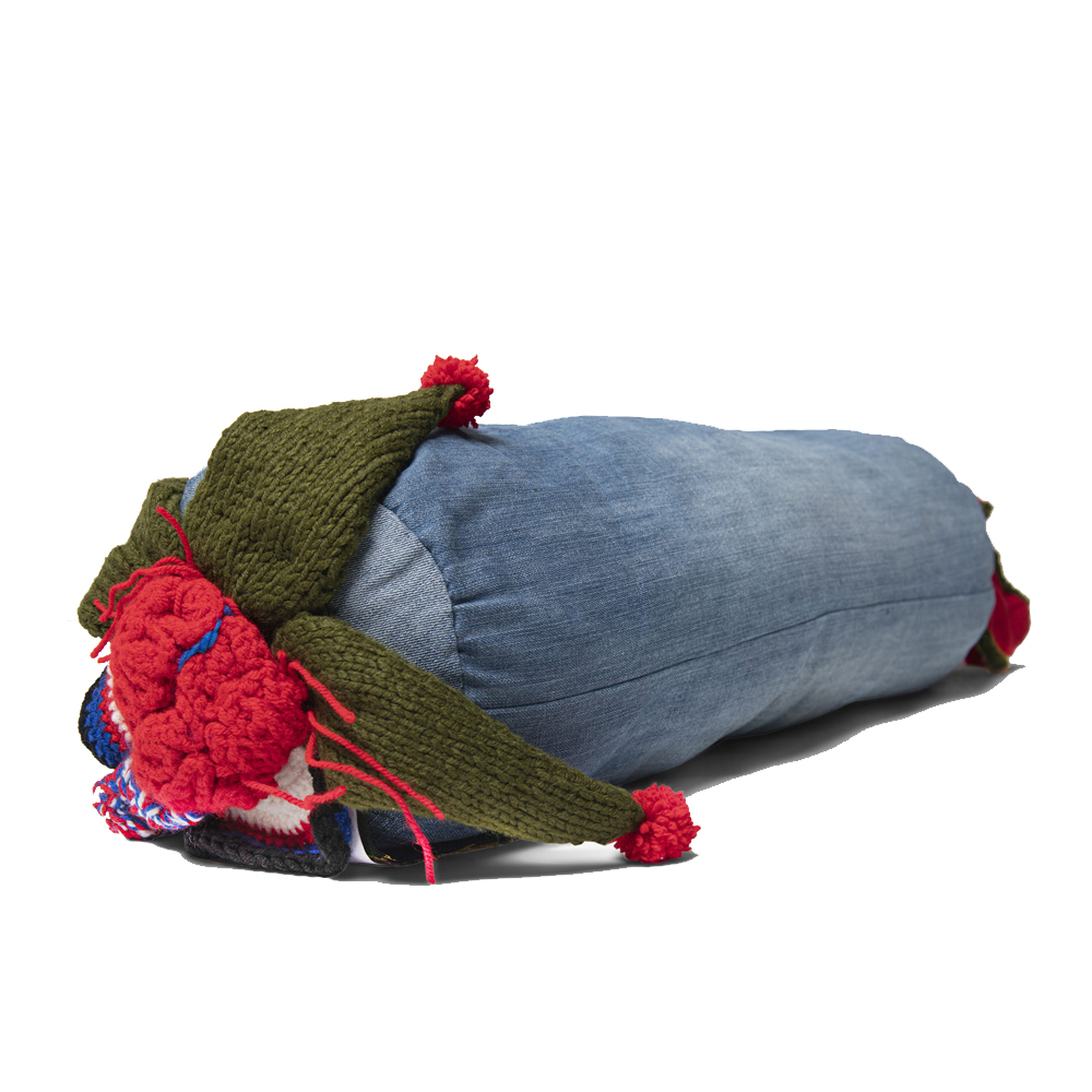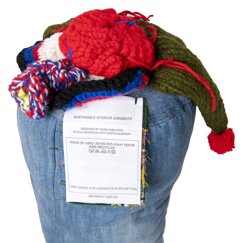 Подушка из джинсовой одежды и вязания Heart&Brain