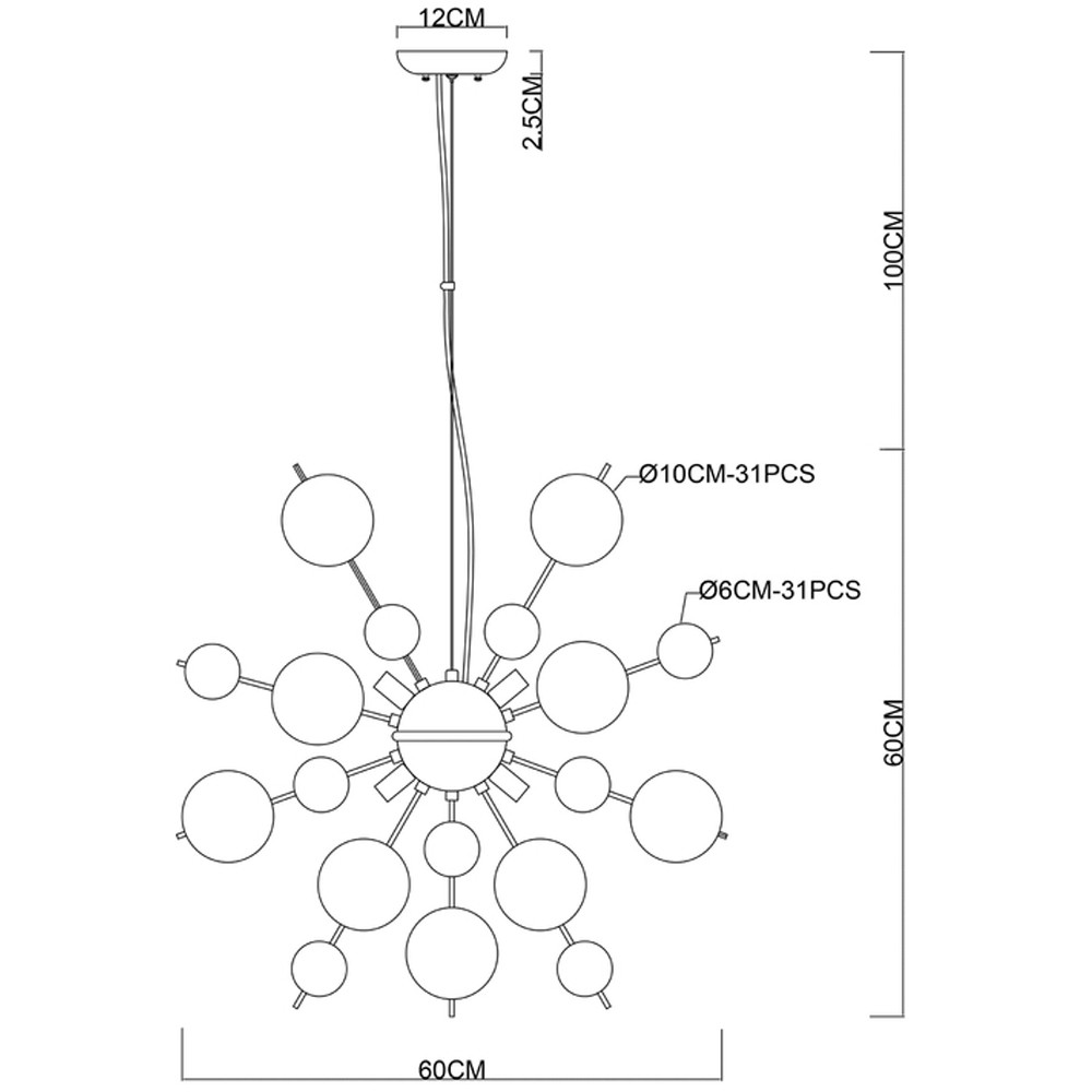 Окунитесь в атмосферу космического пространства с моделью из коллекции Melano. В которой множество серебряных шаров, закрывающих сами лампочки, помогают свету рассеиваться мягко и равномерно по всему помещению. Это создает комфортное, приглушенное освещение без резких теней и бликов, подходящее как для гостиных, так и для спален.