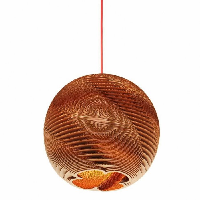 Серия светильников Culle - это яркий представитель современного дизайна. Благодаря передовым инструментам проектирования нам удалось создать столь необыкновенную форму и проработать каждую деталь до самых мелких подробностей. Главной идей создания подвесного светильника Culle 40 послужила структура ДНК. Мы приложили все возможные услилия чтобы воссоздать структуру живой субстанции и попытались дать вторую жизнь материалу, который когда-то был частью природы. Светильник в стиле эко-дизайн сделан из гофрированного картона по специальной технологии и пропитан экологически чистой огнезащитной пропиткой.