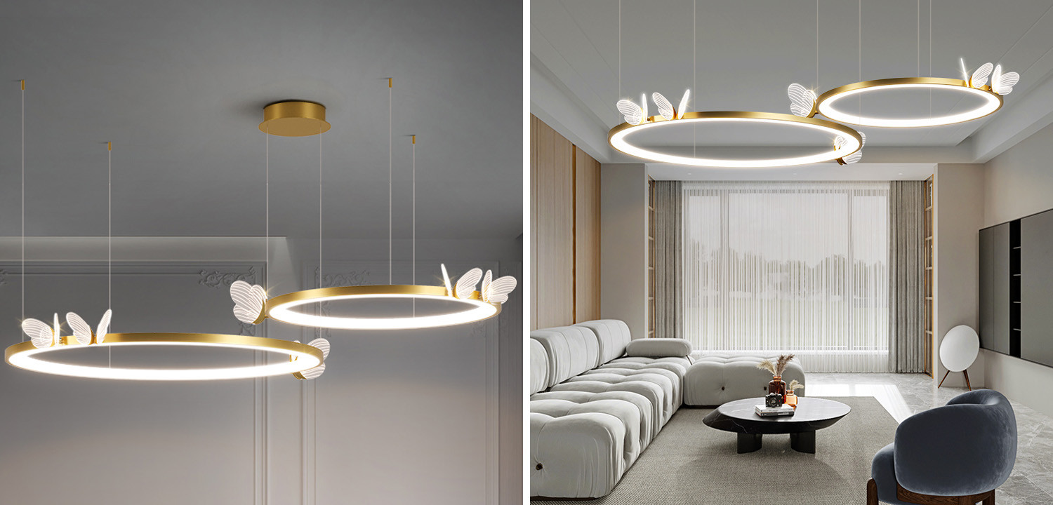Купить подвесной светильник двойное кольцо с бабочками Butterfly Double Ring F – это выбрать модель в стиле модерн, фьюжн и конструктивизм.